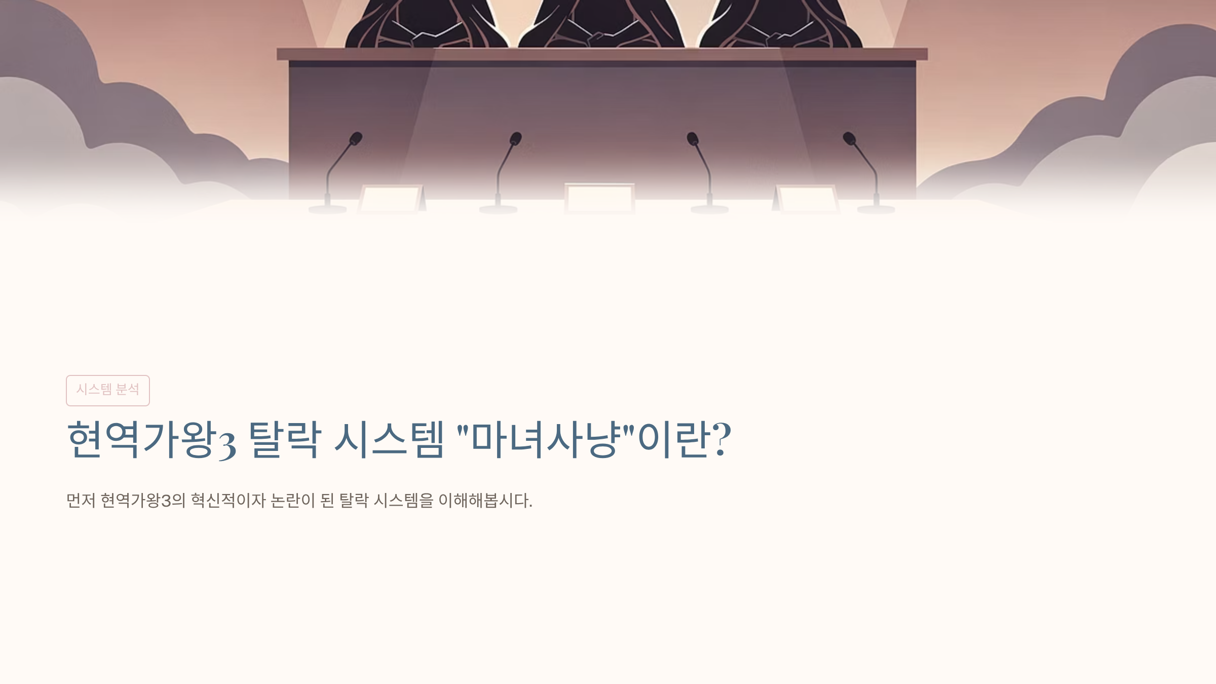 2025년 12월 23일 첫 방송부터 혼란과 충격을 안겨주고 있는 MBN '현역가왕3'의 예선 무대에서 "마녀사냥"이라는 전대미문의 시스템이 도입되었습니다. 기존 시즌1, 2의 "심사위원 심사 + 투표"와는 전혀 다른 이 시스템에서, 현역 거물들이 차례차례 탈락하고 있습니다. 특히 예상을 완전히 뒤엎은 탈락자 명단이 네티즌들의 뜨거운 논쟁을 불러일으켰습니다. 우승 후보 정미애가 90점이라는 최악의 성적을 받았을 때부터 이미 예고됐던 일입니다. 하지만 "반가희" 탈락은 "말도 안 된다"는 반발과 논란을 낳았습니다. 오늘은 현역가왕3의 탈락 시스템, 예선 탈락자들, 마녀심사단 투표 결과, 그리고 그 뒤의 논란을 완벽하게 정리해드리겠습니다. 당신은 이 탈락에 동의하나요? 😊