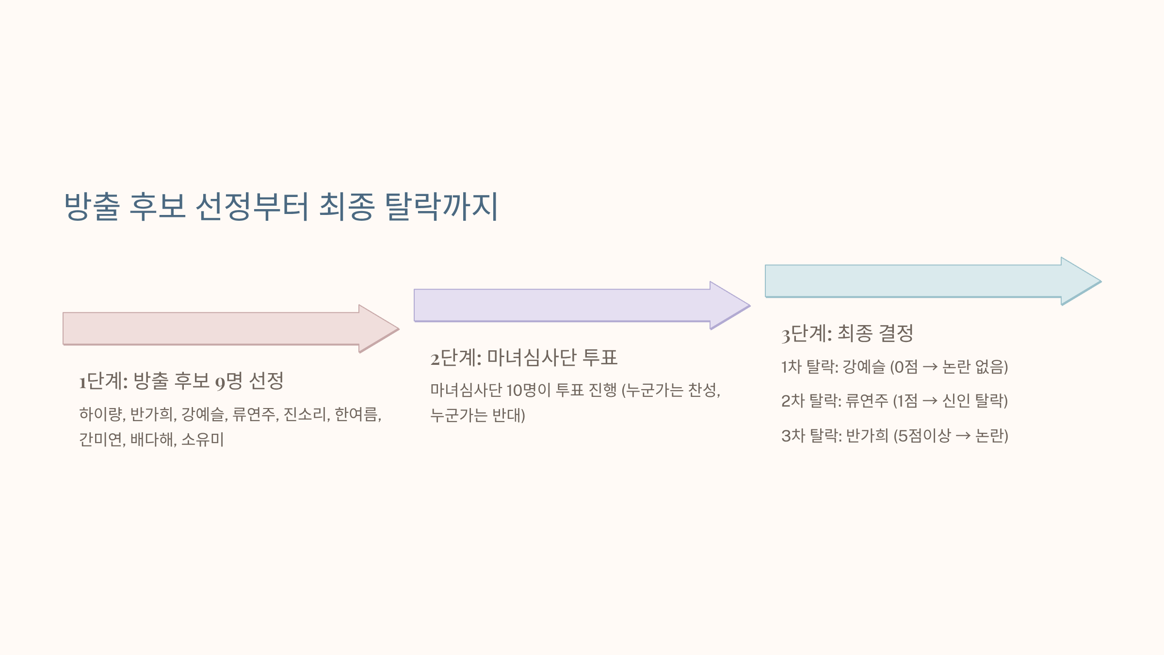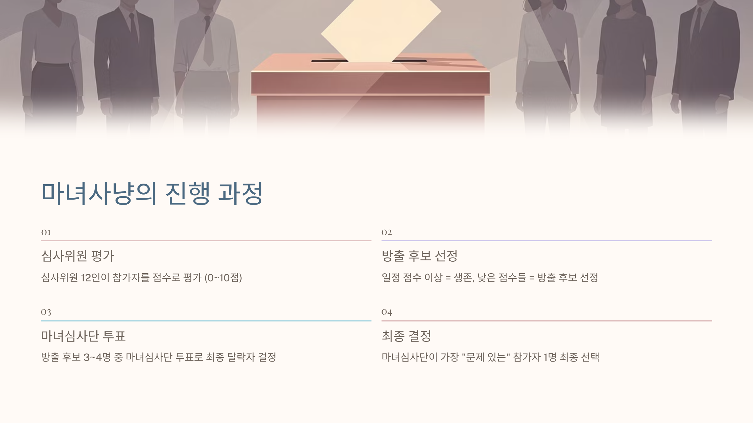 3단계: 방출 후보 3~4명 중 마녀심사단 투표로 최종 탈락자 결정