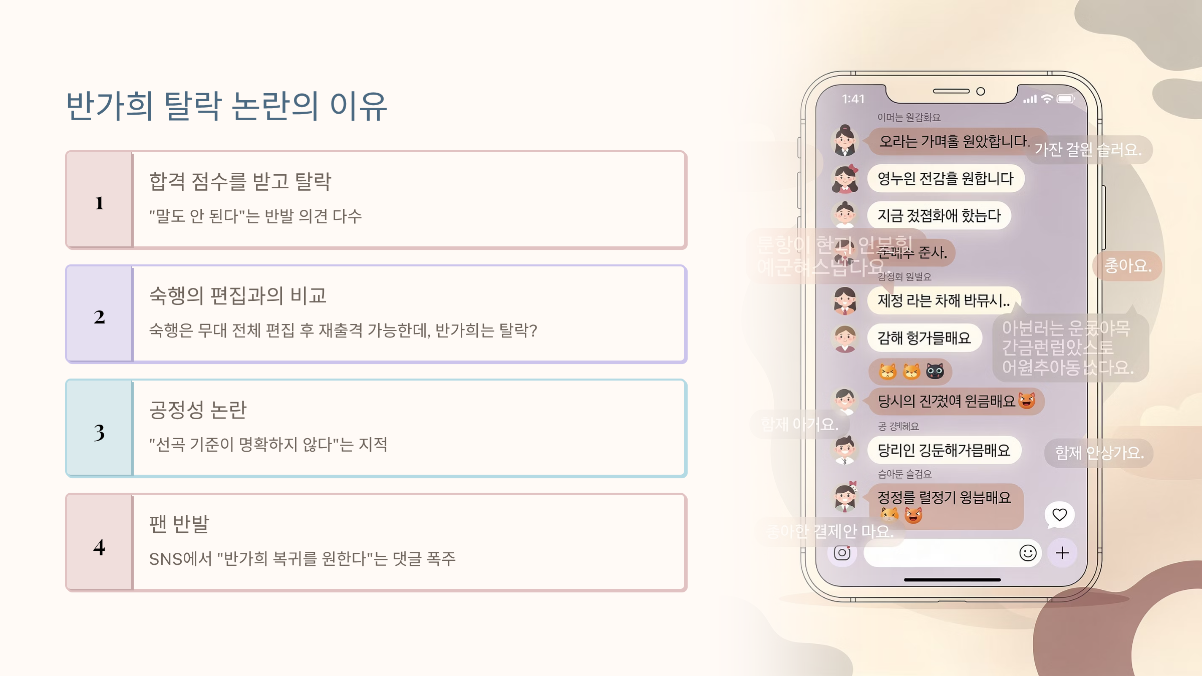 - 팬 반발: SNS에서 "반가희 복귀를 원한다"는 댓글 폭주