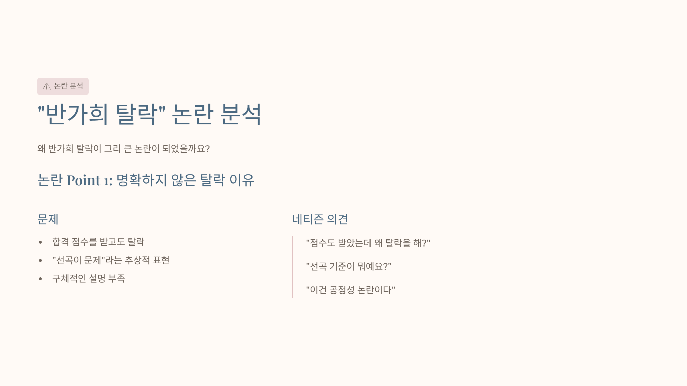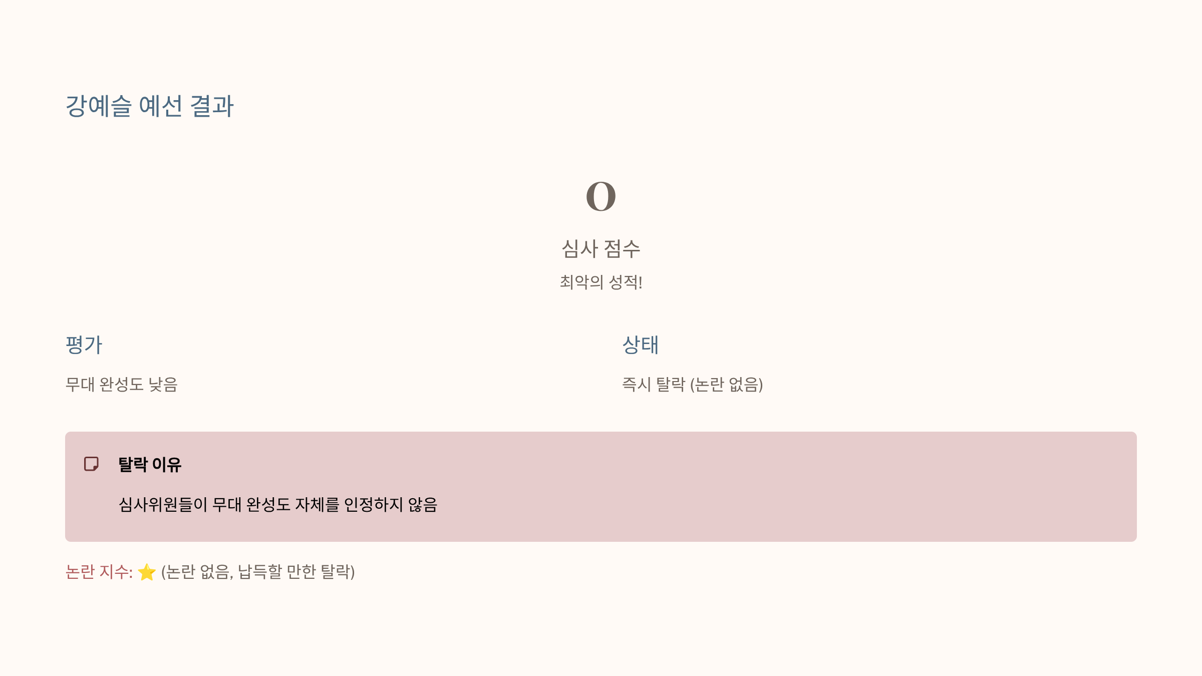 논란 지수: ⭐ (논란 없음, 납득할 만한 탈락)