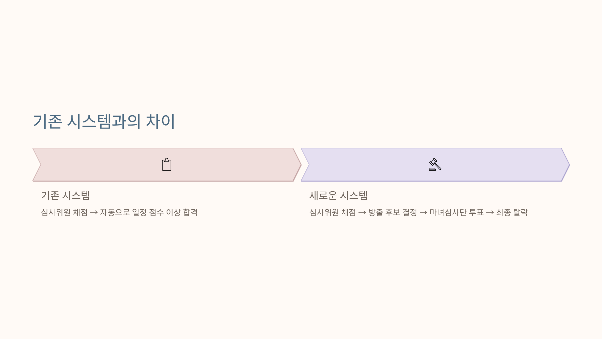 - 기존: 심사위원 채점 → 자동으로 일정 점수 이상 합격