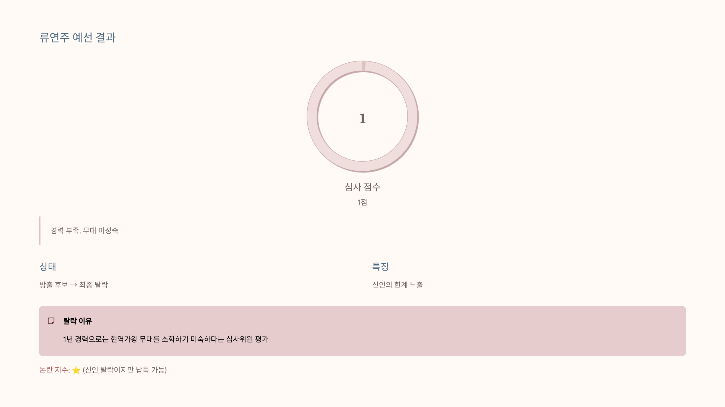 2️⃣ 류연주 - 최단 경력 신인의 탈락