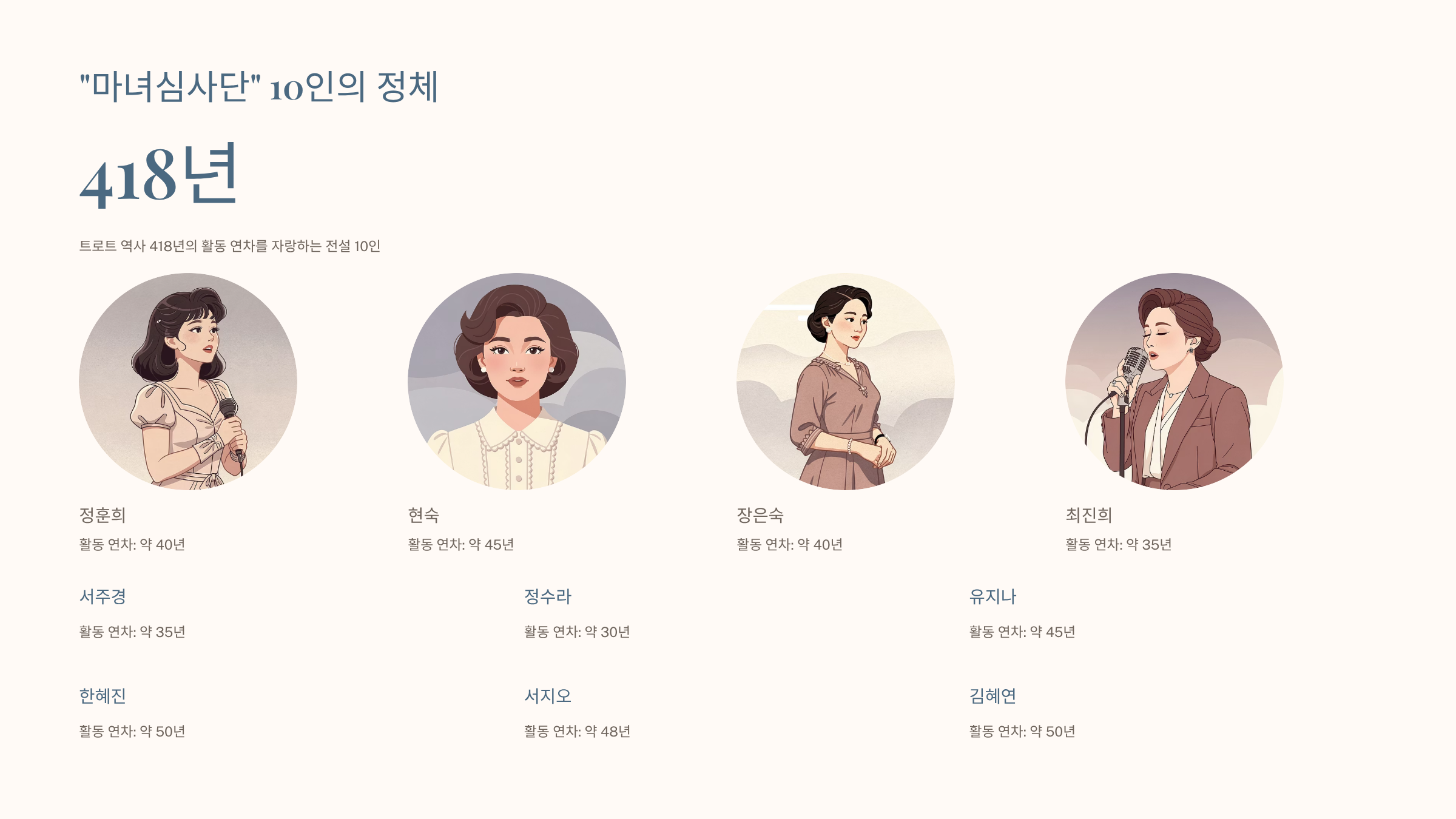 마녀심사단 = 트로트 역사 418년의 활동 연차를 자랑하는 전설 10인
