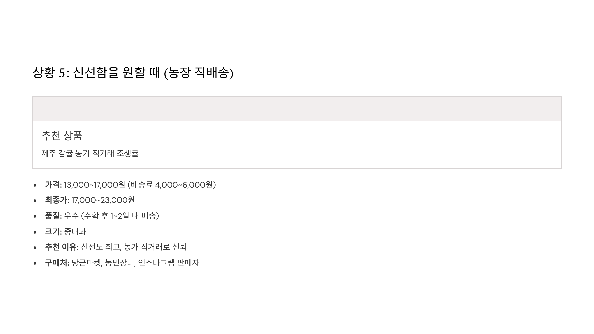 - 추천 이유: 신선도 최고, 농가 직거래로 신뢰