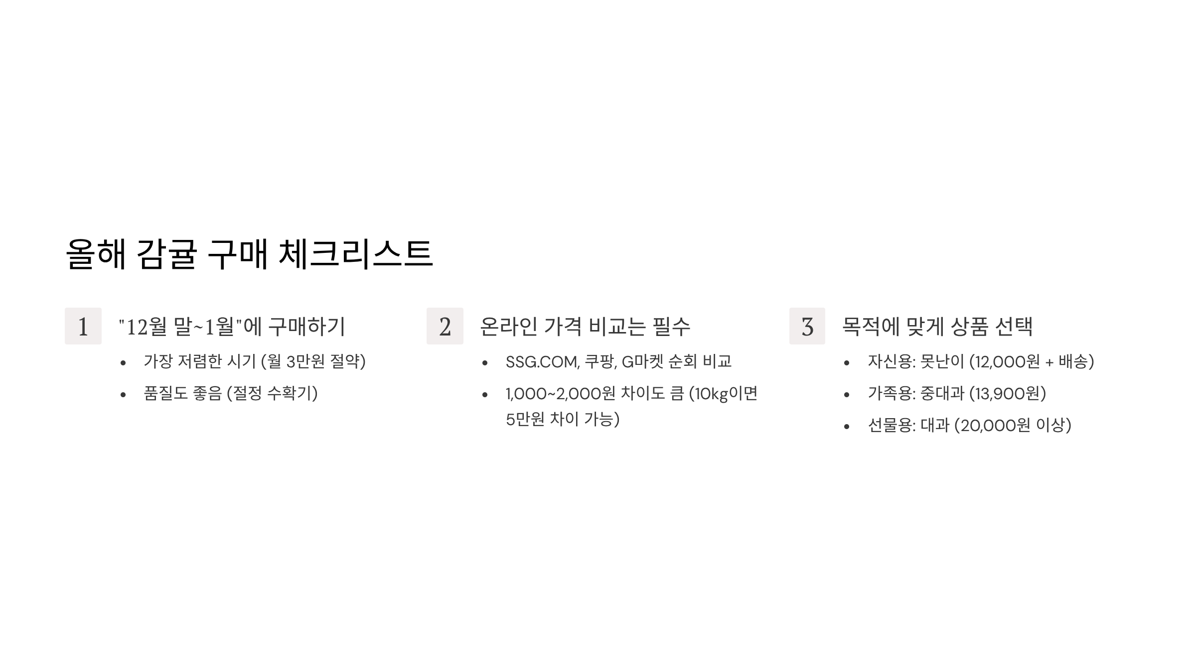 올해 감귤 구매 체크리스트: