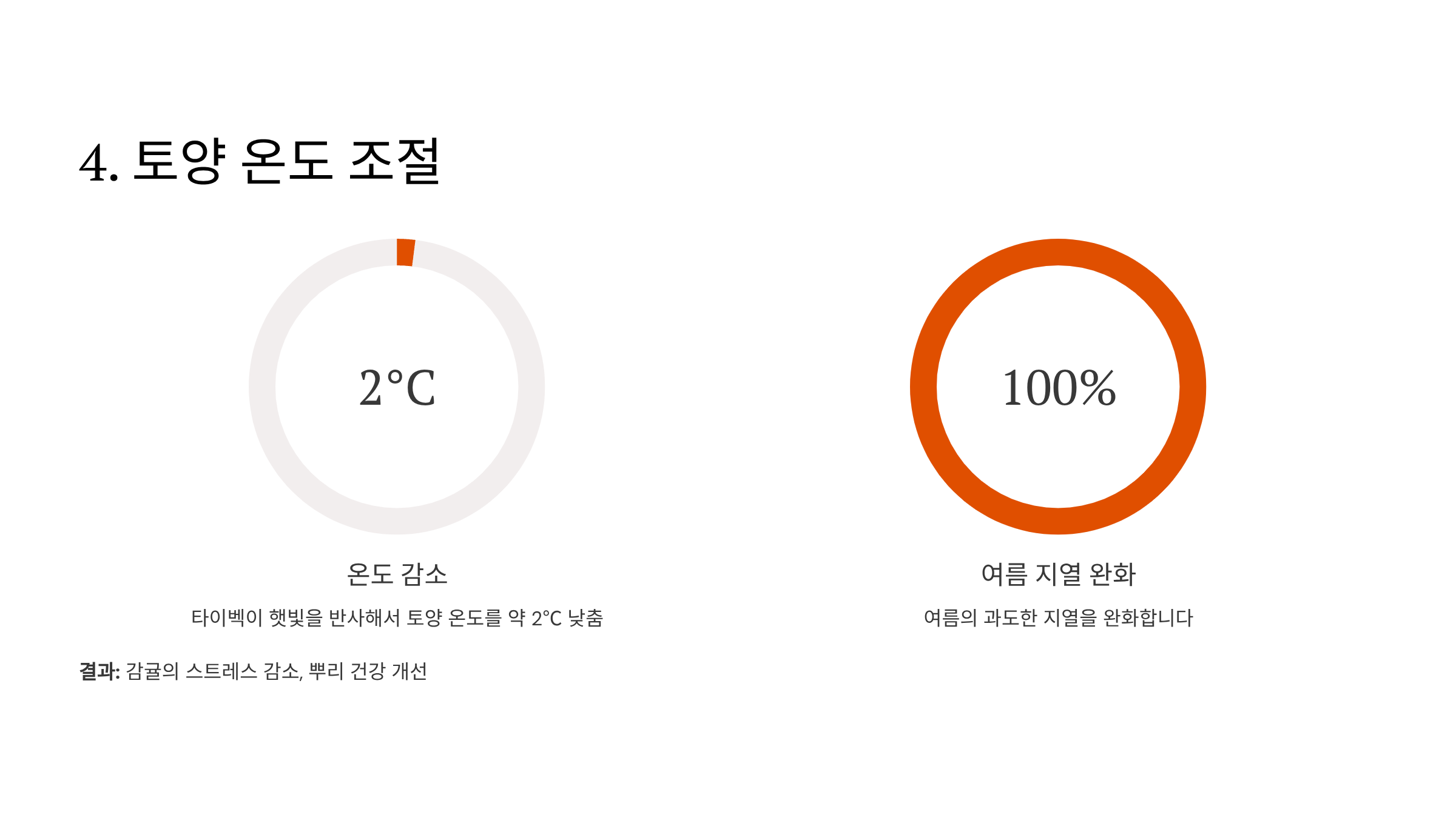 - 타이벡이 햇빛을 반사해서 토양 온도를 약 2℃ 낮춤
