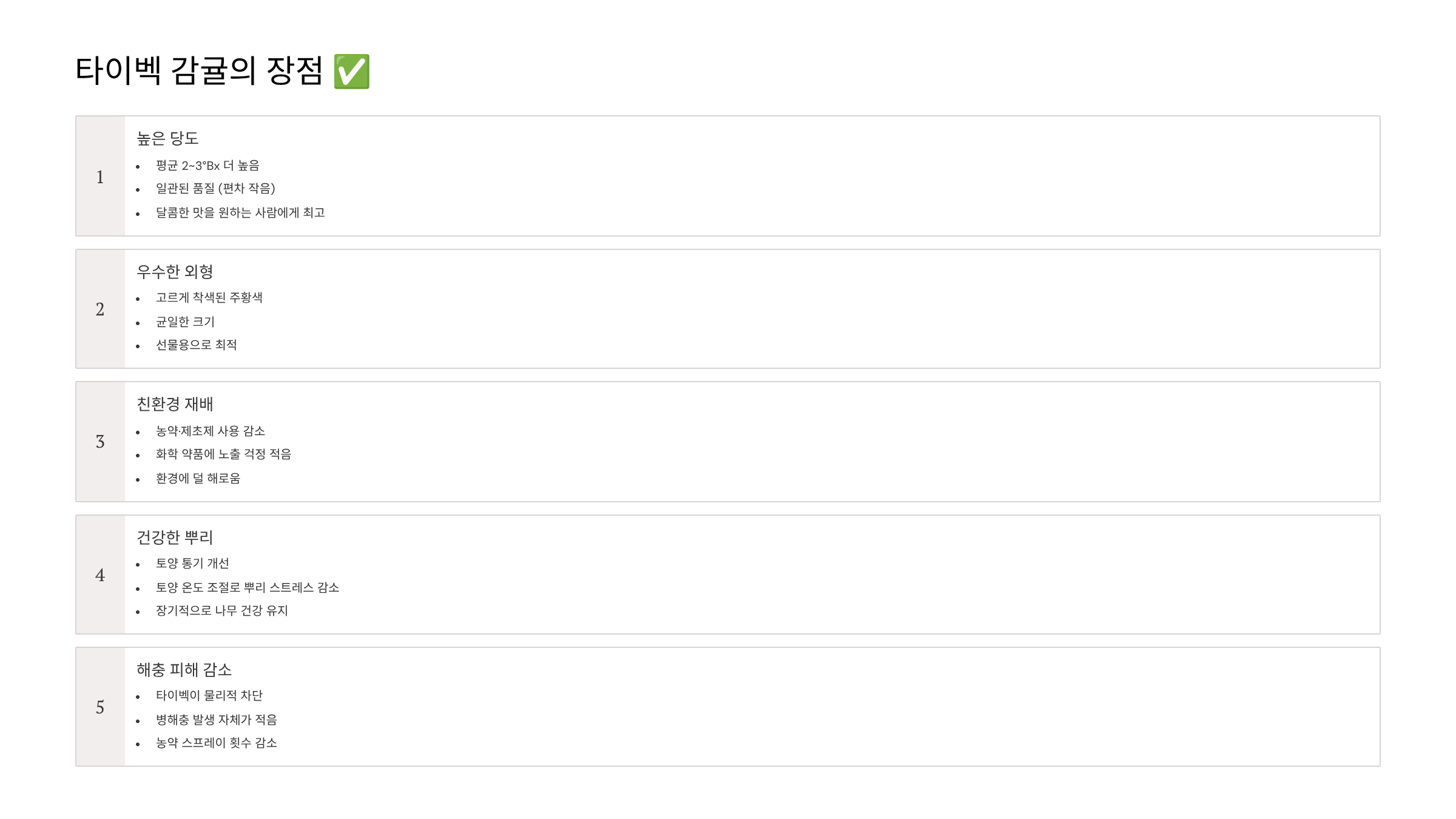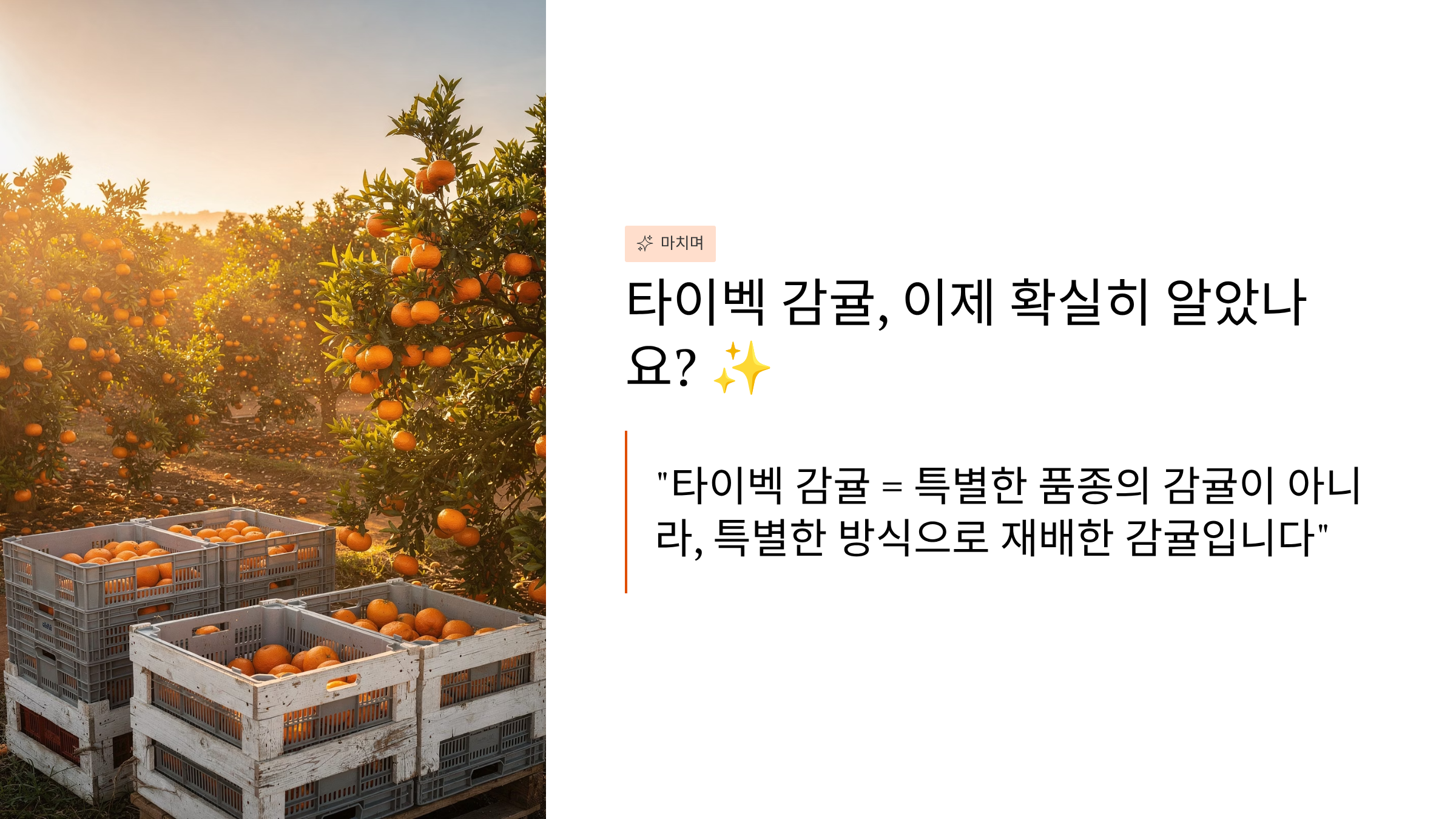 마치며: 타이벡 감귤, 이제 확실히 알았나요? ✨