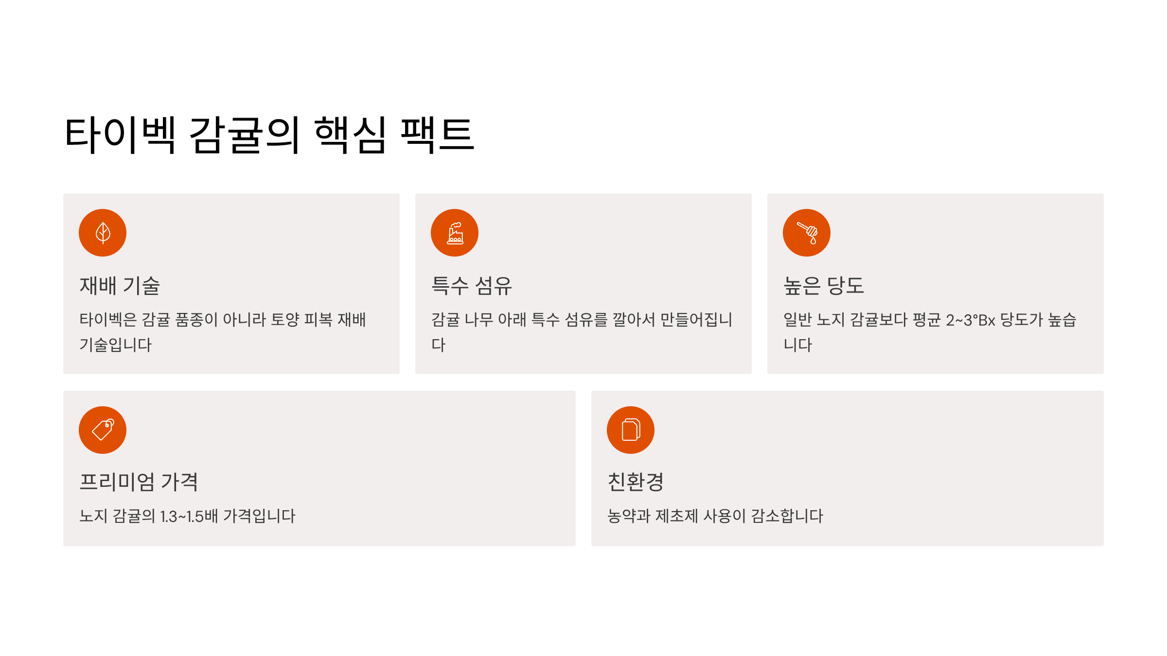 "타이벡 감귤 = 특별한 품종의 감귤이 아니라, 특별한 방식으로 재배한 감귤입니다"