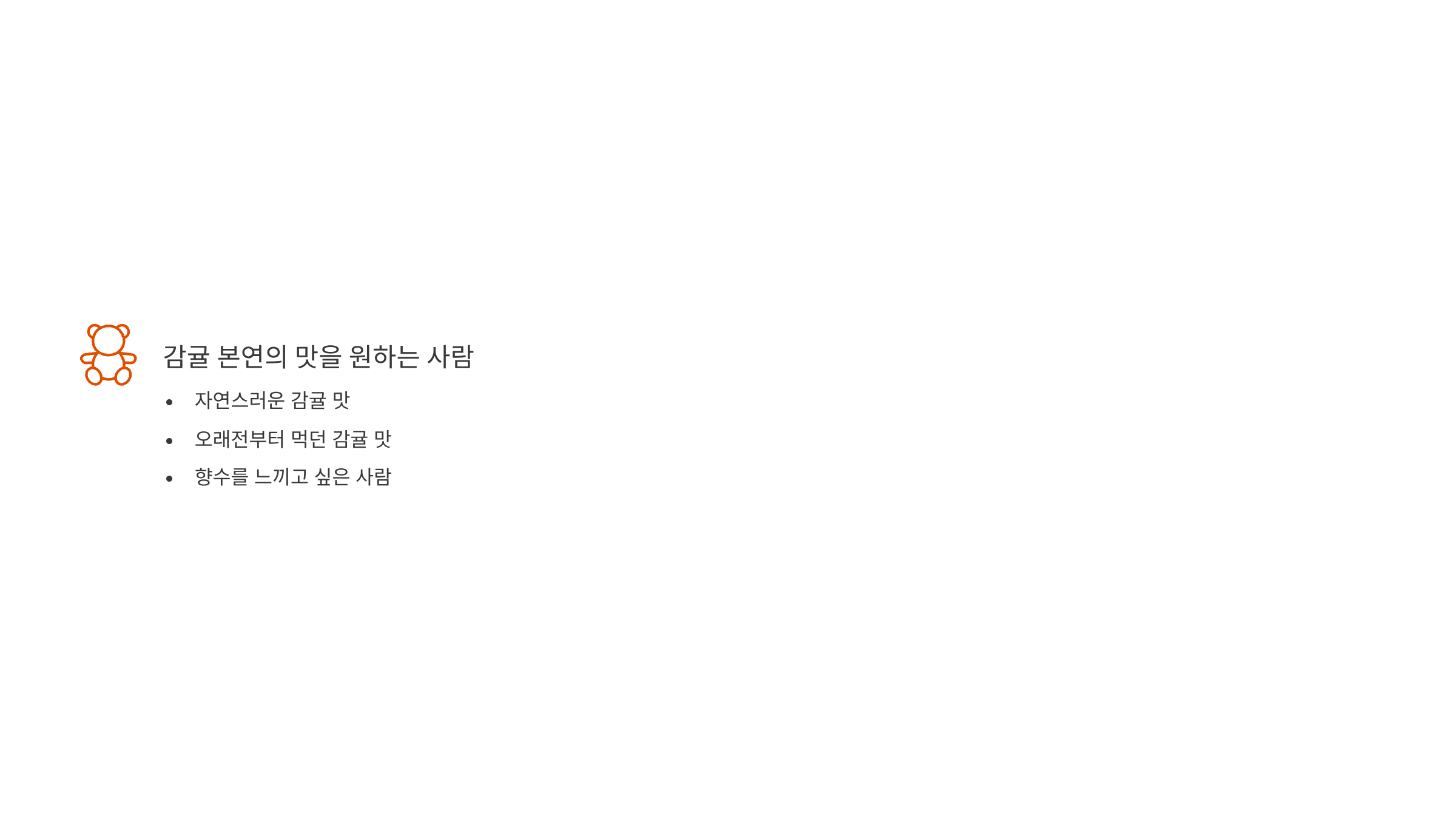 | 종합 평가 | 전통적인 감귤 맛 | 프리미엄한 맛 |