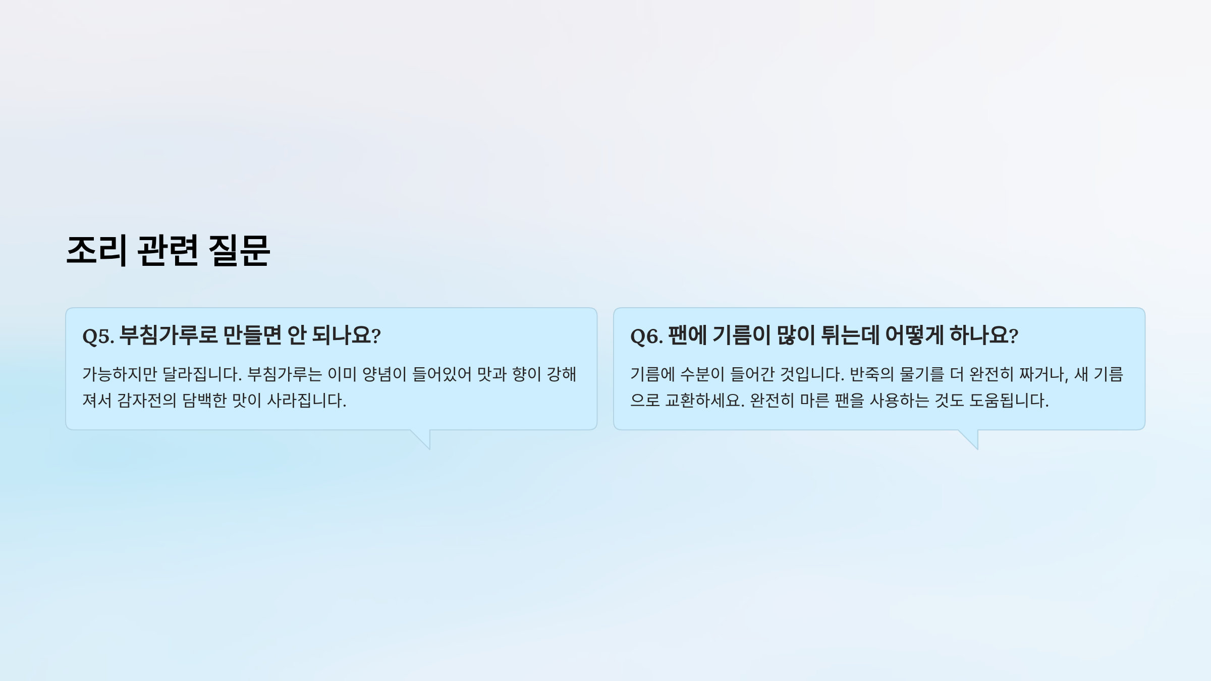 Q6. 팬에 기름이 많이 튀는데 어떻게 하나요?