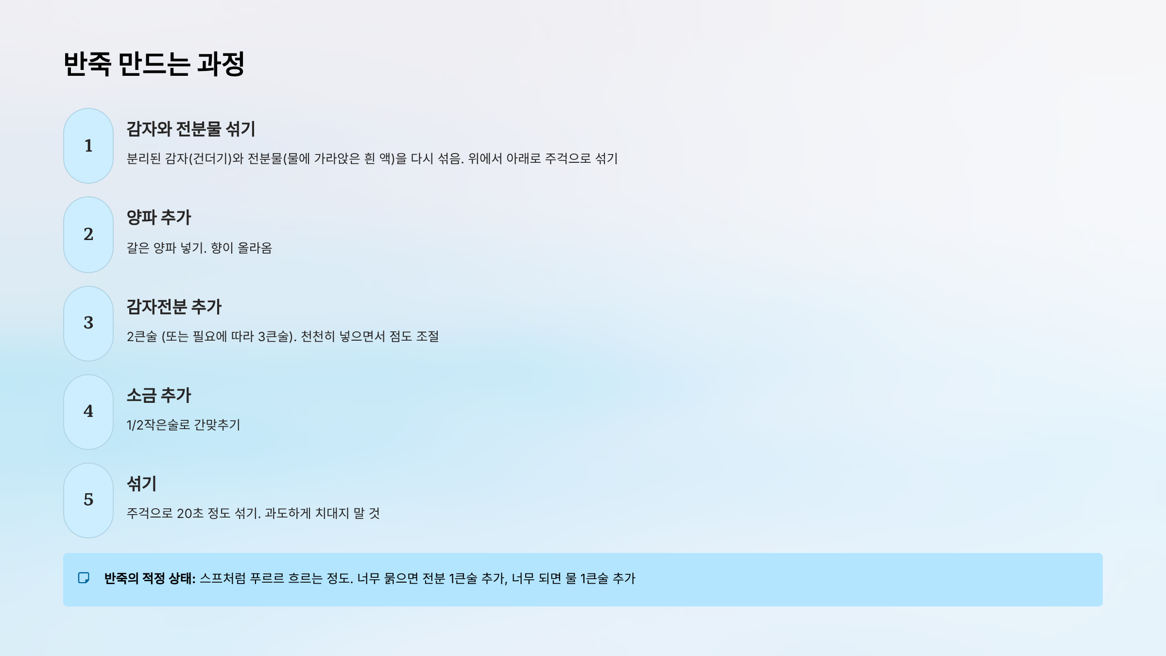 - ✓ 감자전분 2큰술 (정확한 양)