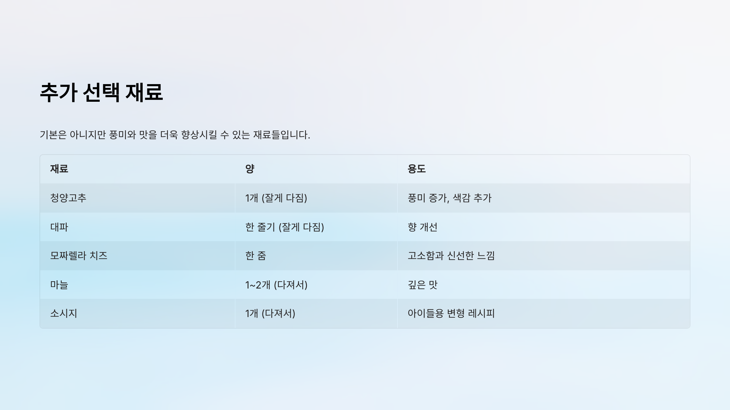 추가 선택 재료 (기본은 아니지만 추천)