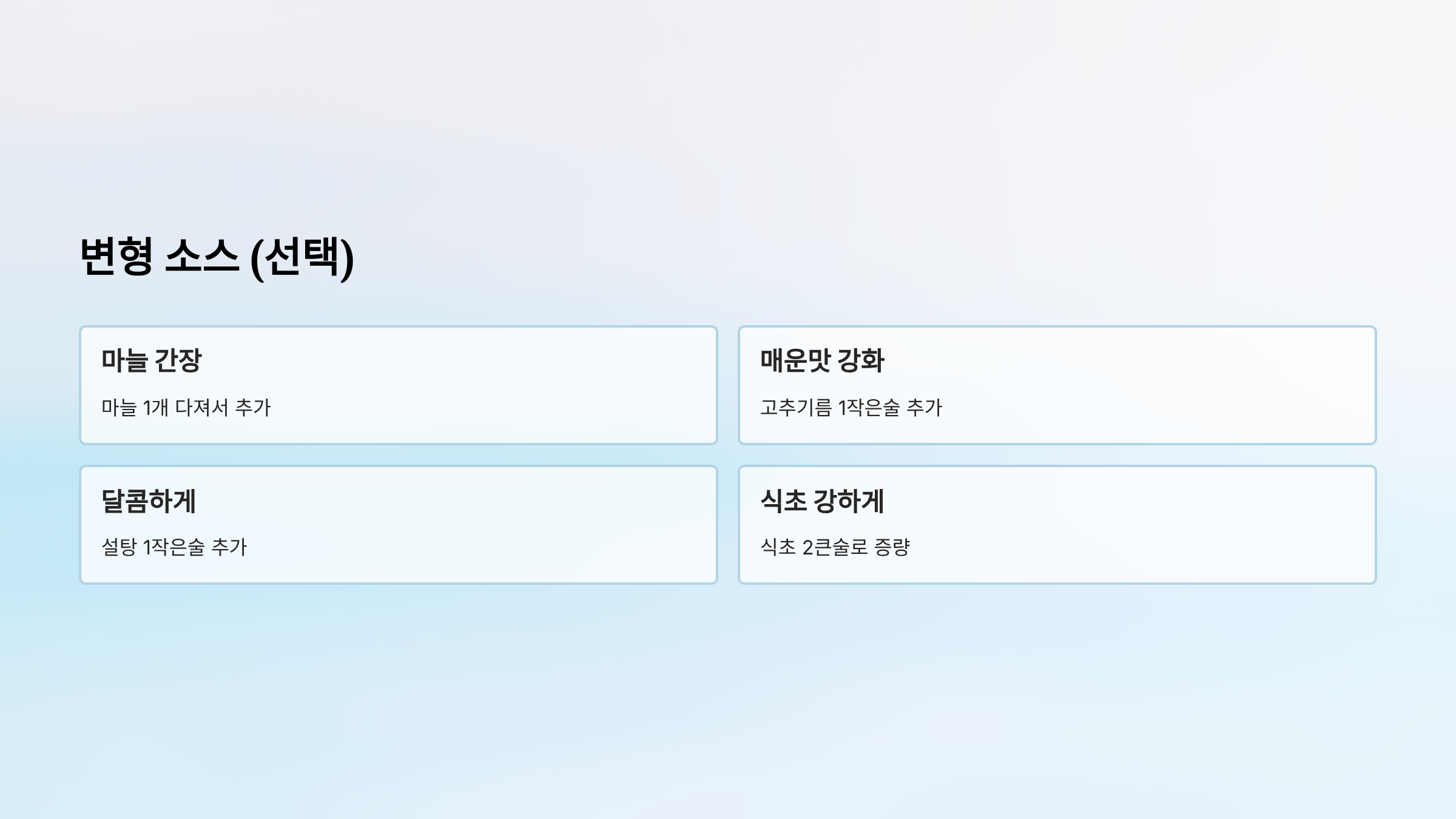 | 설탕 | 1작은술 | 균형잡힌 맛 |