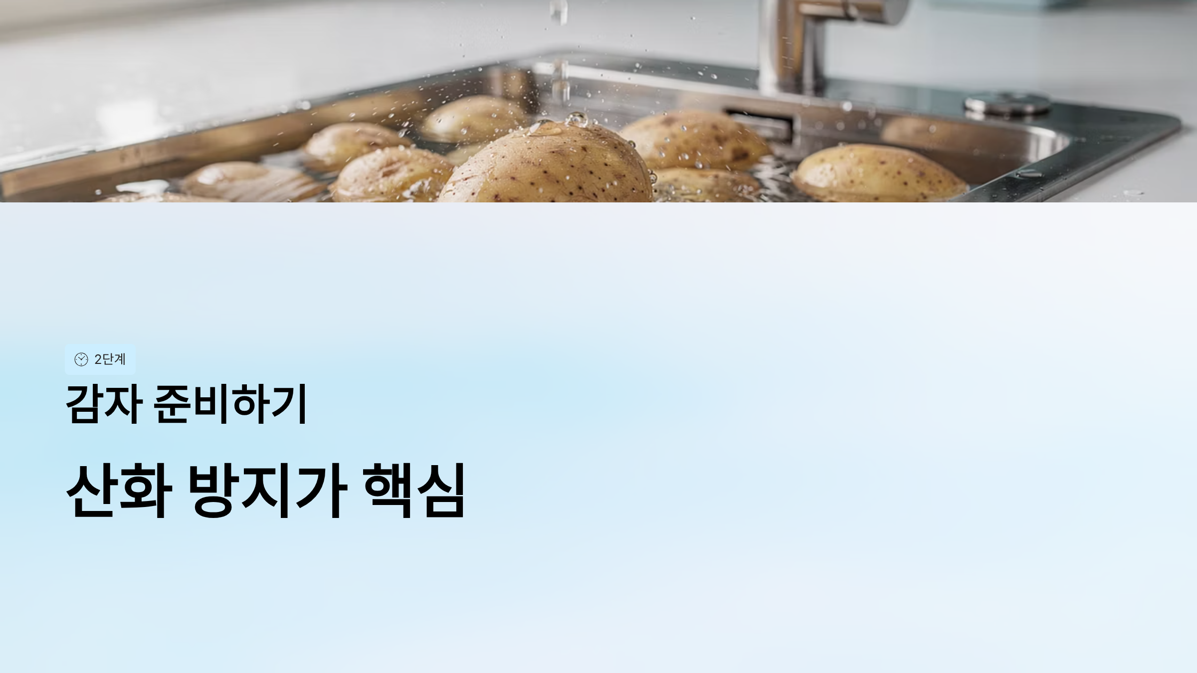 2단계: 감자 준비하기 - 산화 방지가 핵심 ⏰