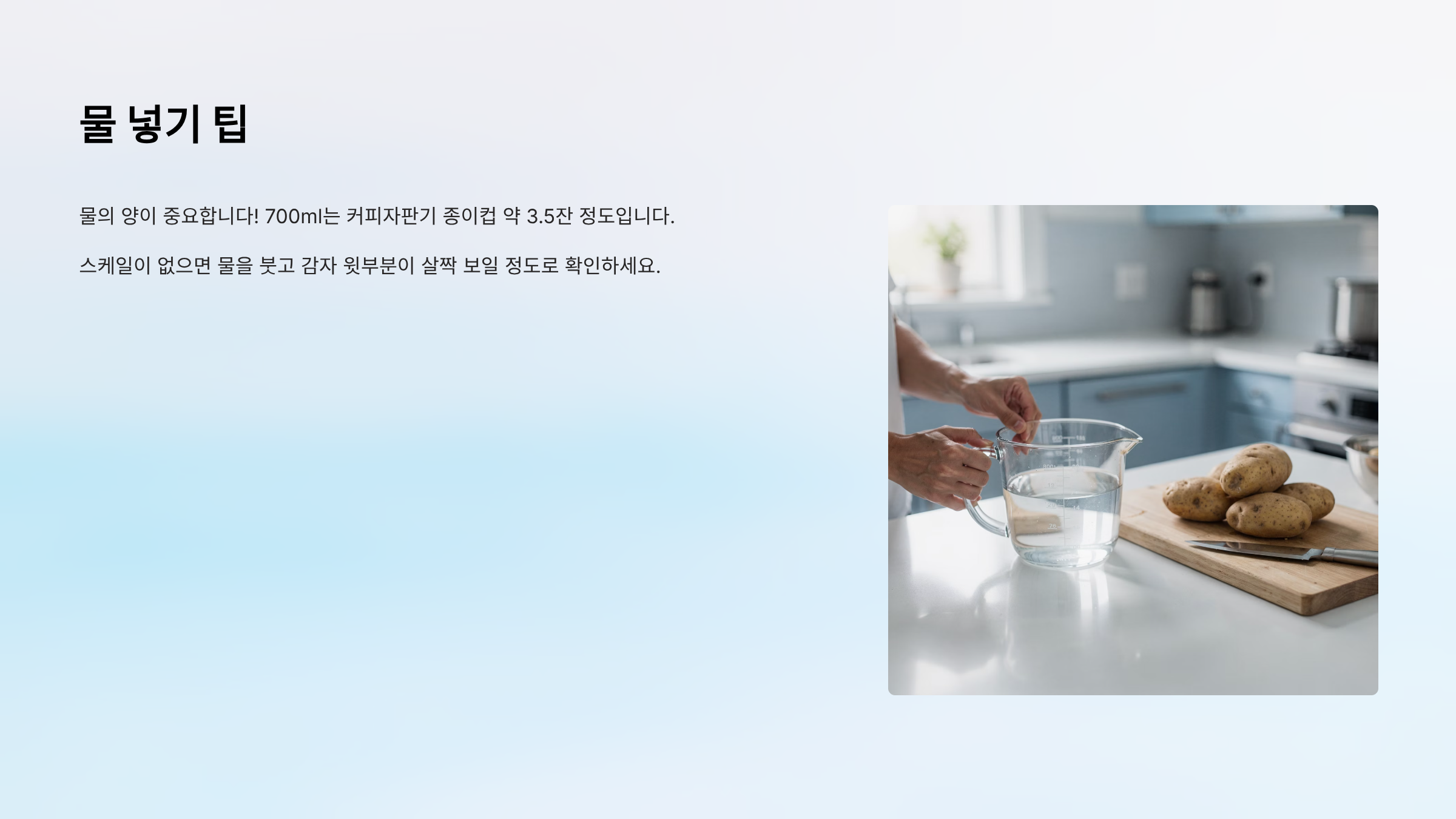 | 물 | 700ml | 감자가 2/3 정도 잠길 정도 |
