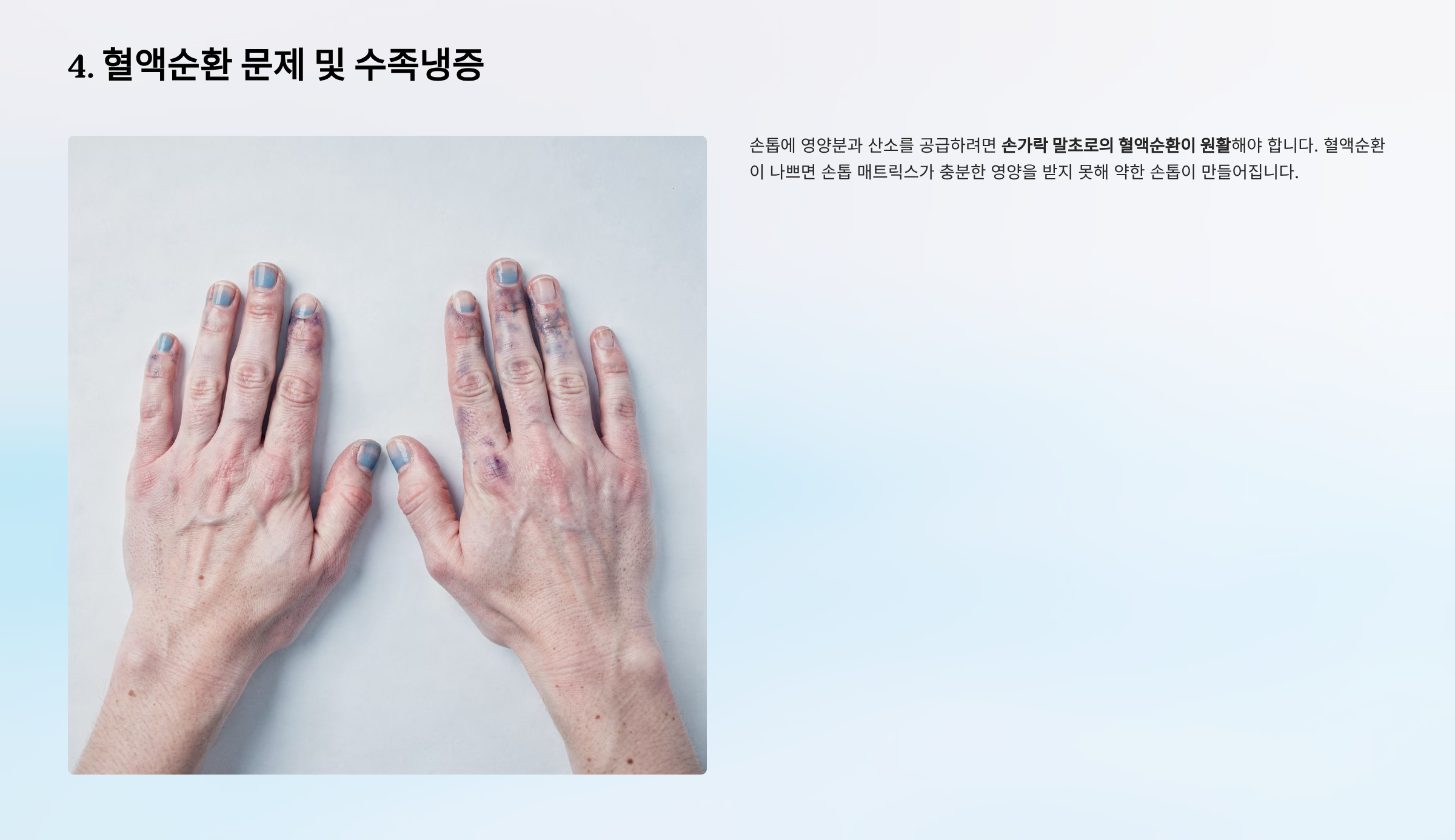 - 손톱이 부러지거나 갈라지는 현상 증가