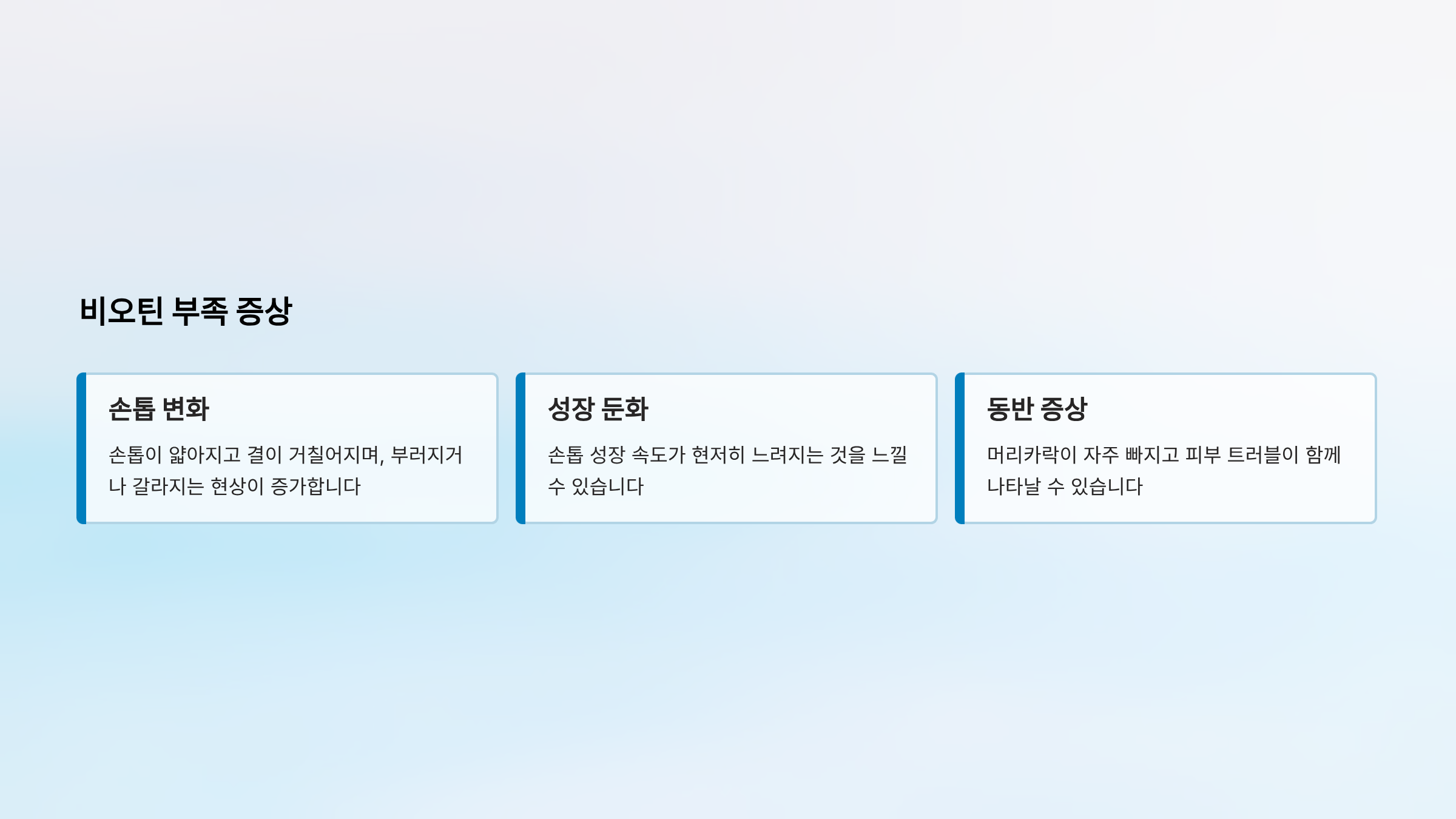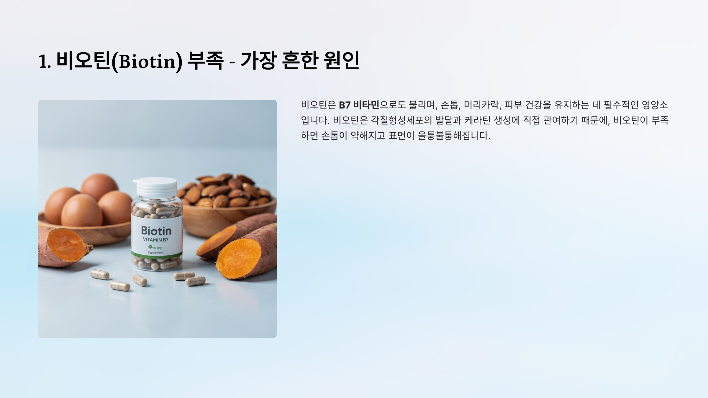 1. 🌟 비오틴(Biotin) 부족 - 가장 흔한 원인