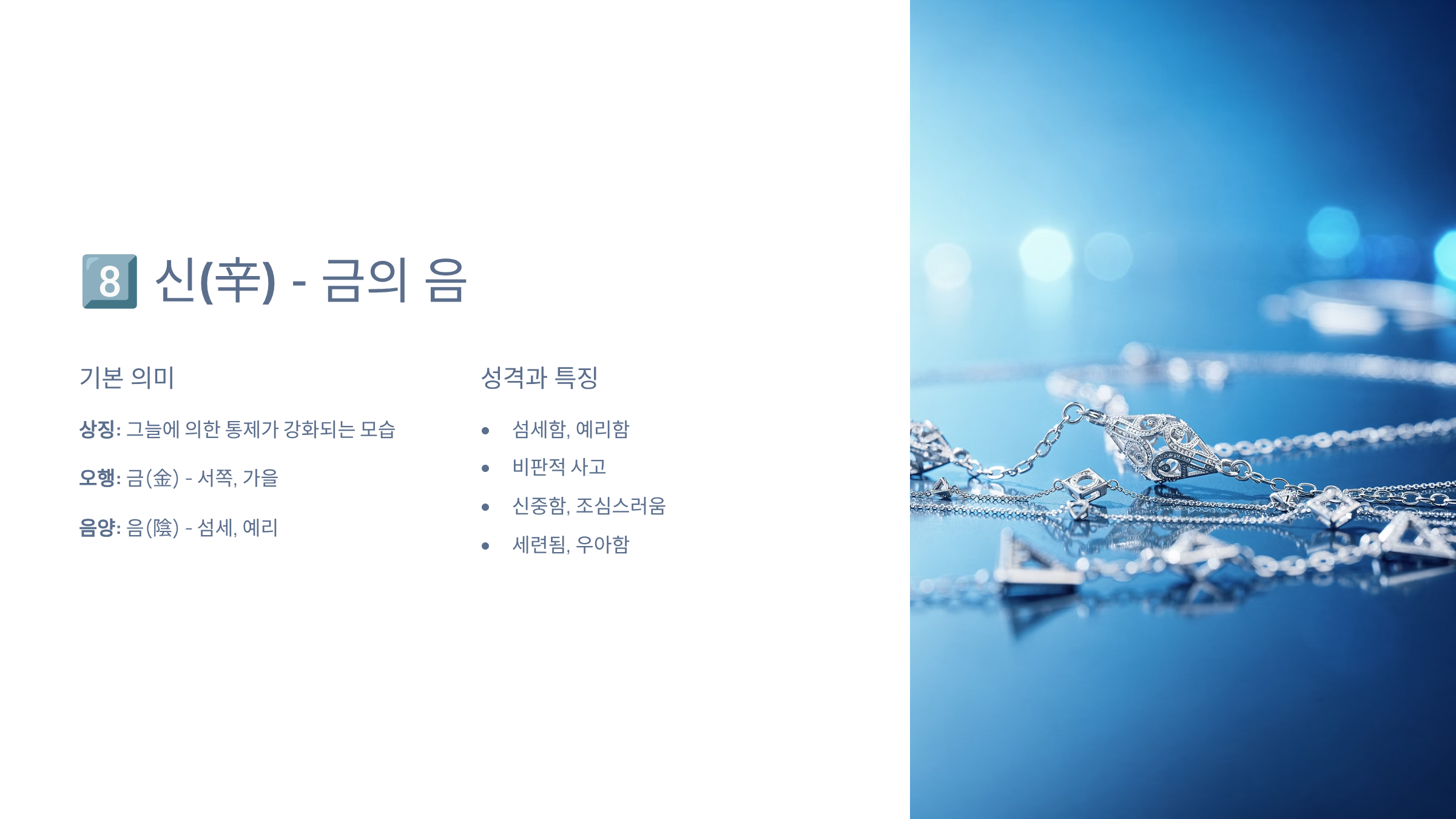 8️⃣ 신(辛) - 금의 음