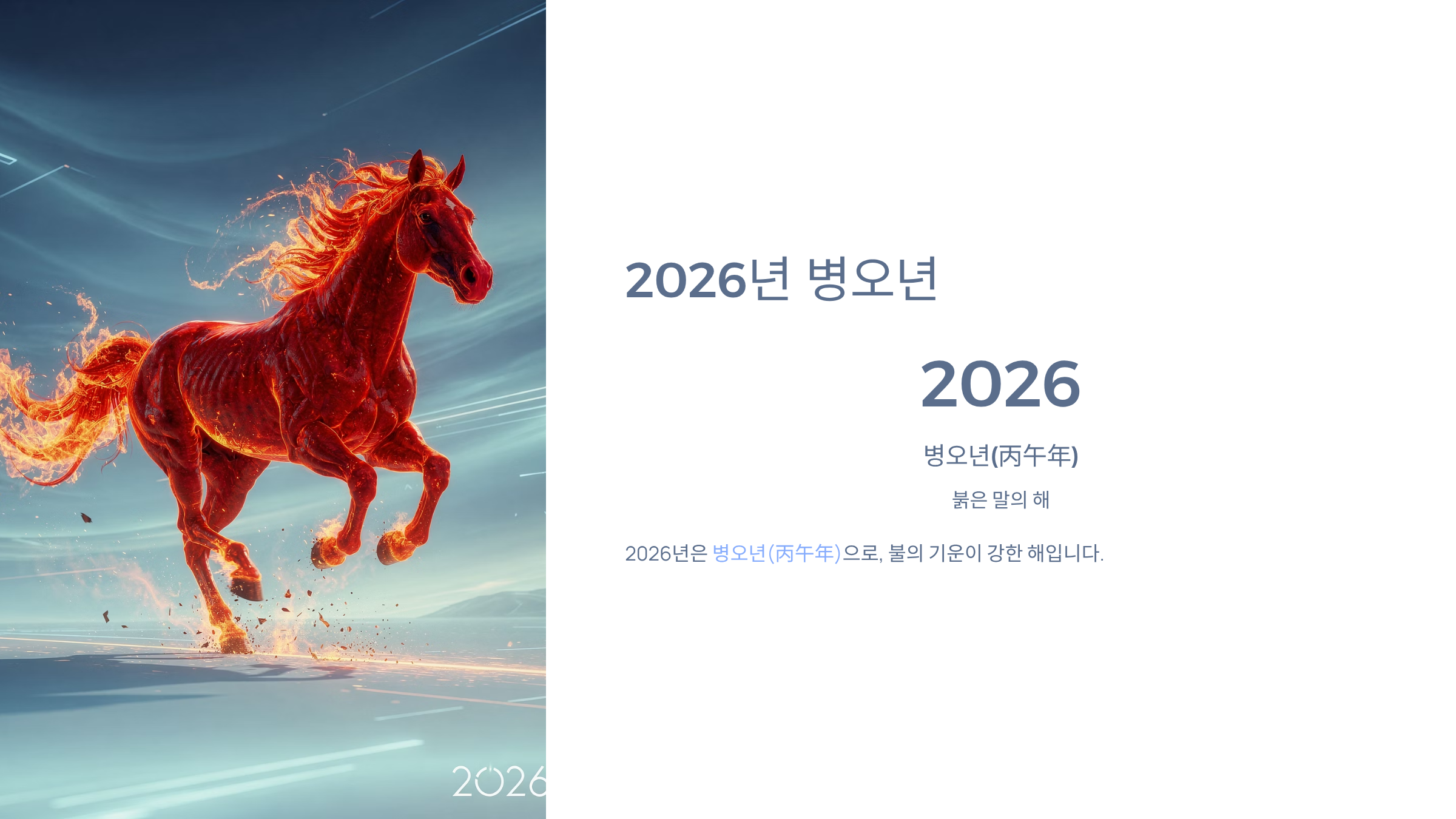 - 2026년은 병오년(丙午年) - 붉은 말의 해