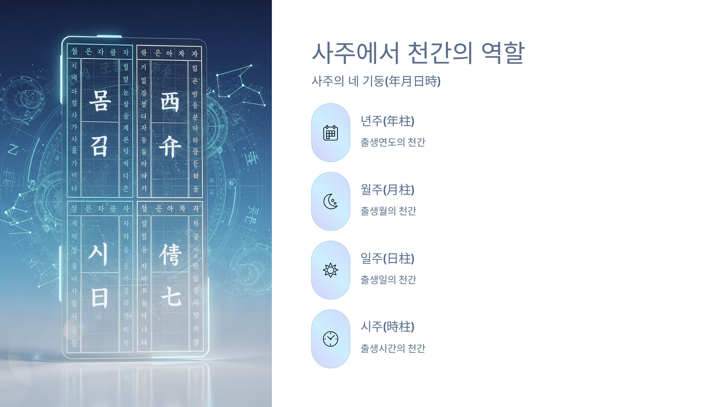 - 시주(時柱): 출생시간의 천간