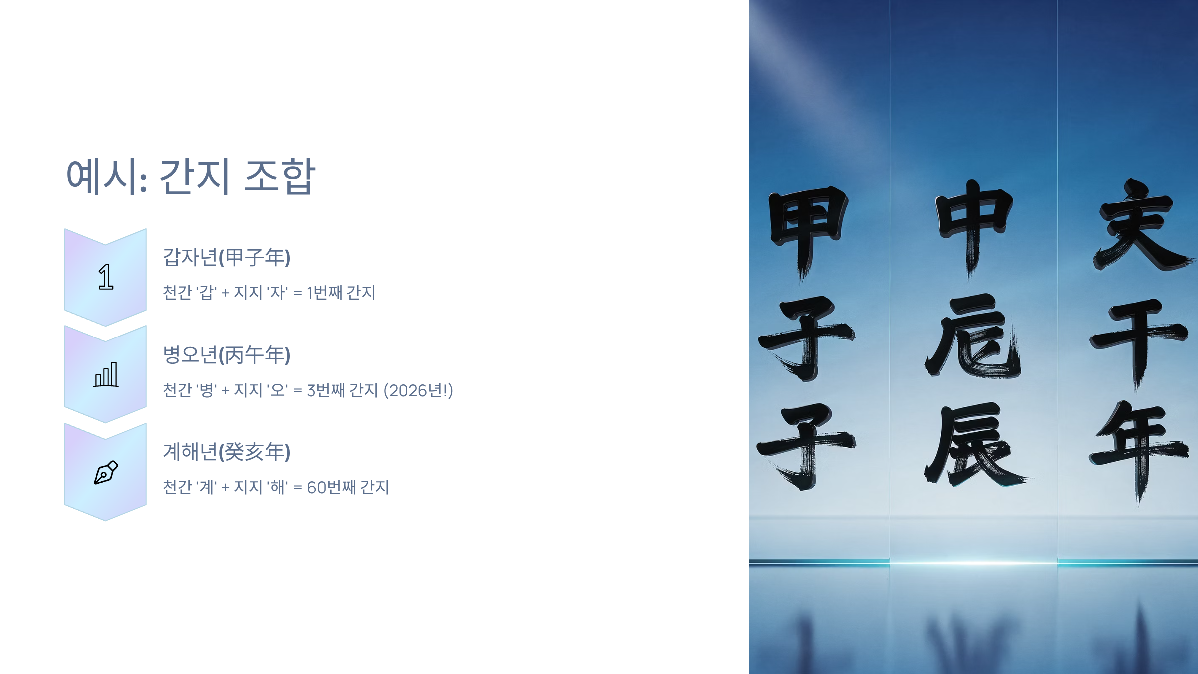 - 계해년(癸亥年): 천간 '계' + 지지 '해' = 60번째 간지