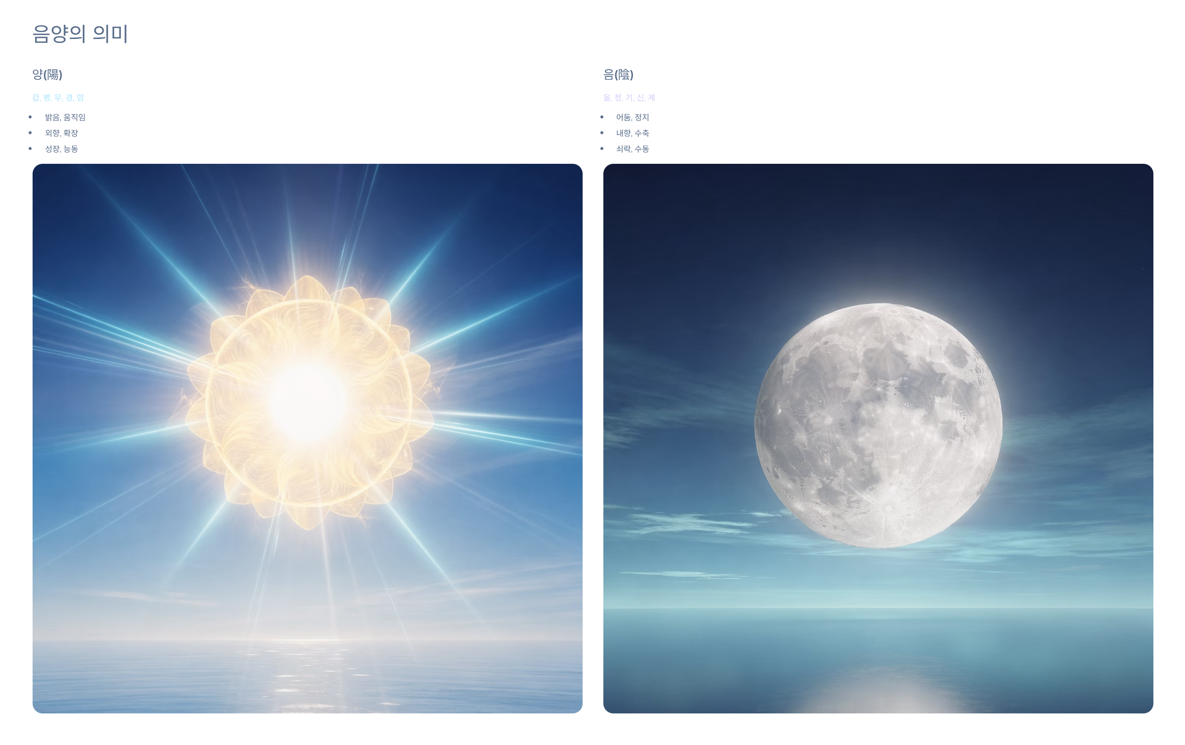 - 음양: 음(陰) - 조용함, 깊이