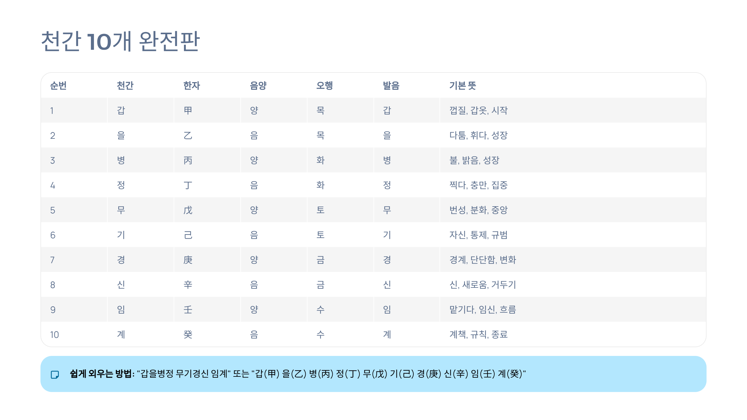 📊 10개 천간의 정확한 순서와 의미