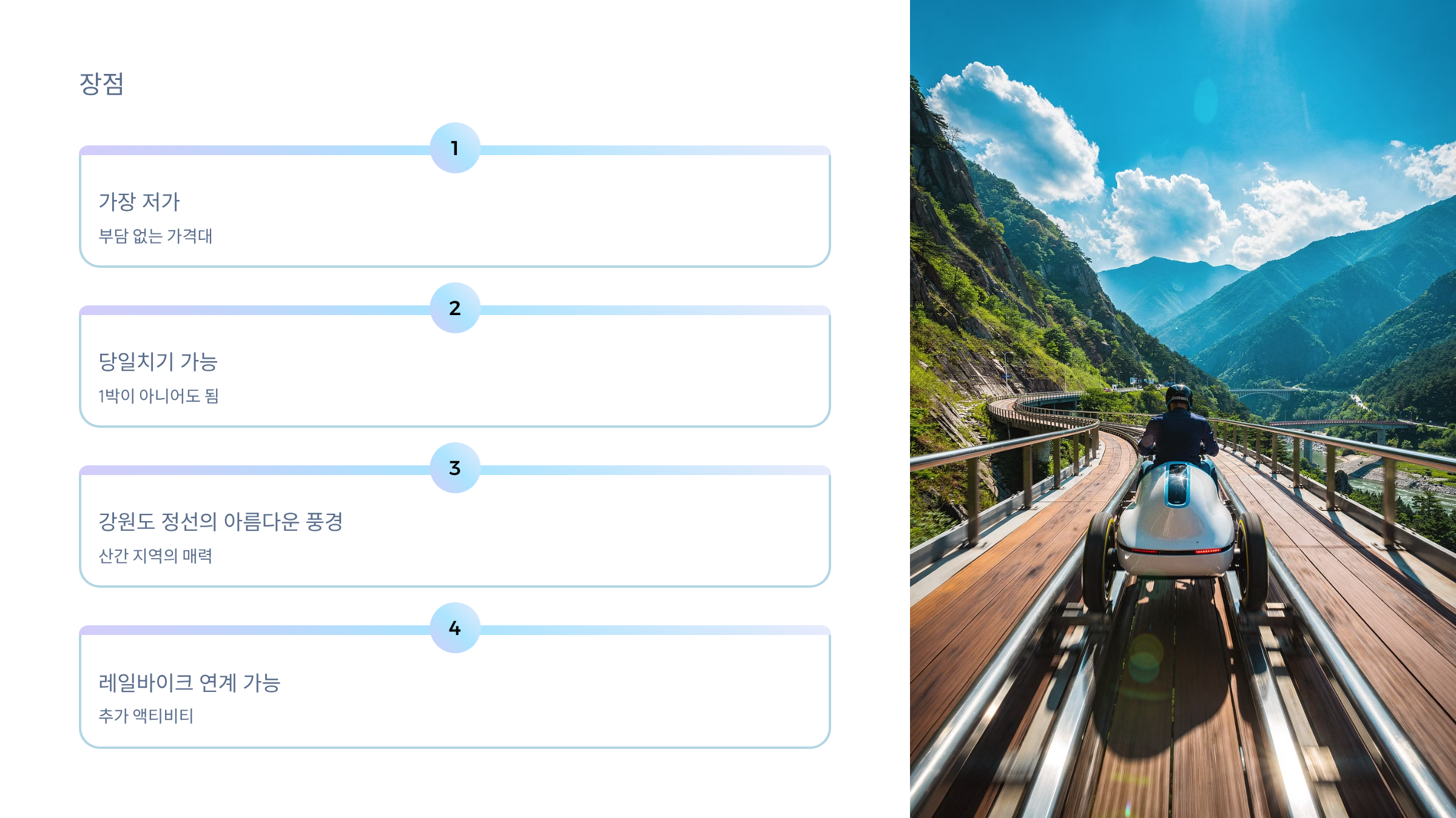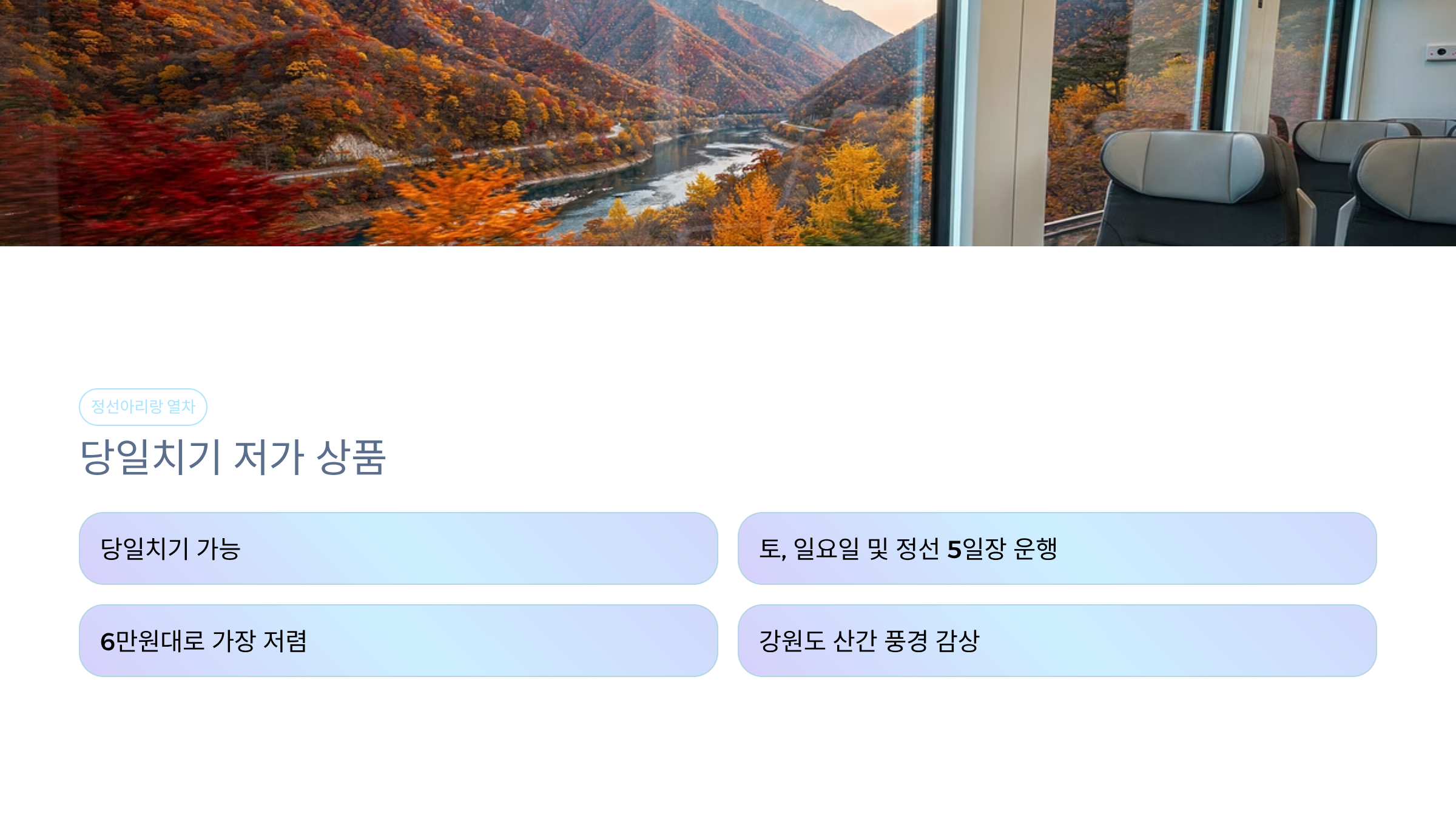 4️⃣ 정선아리랑 열차 - 당일치기 저가 상품
