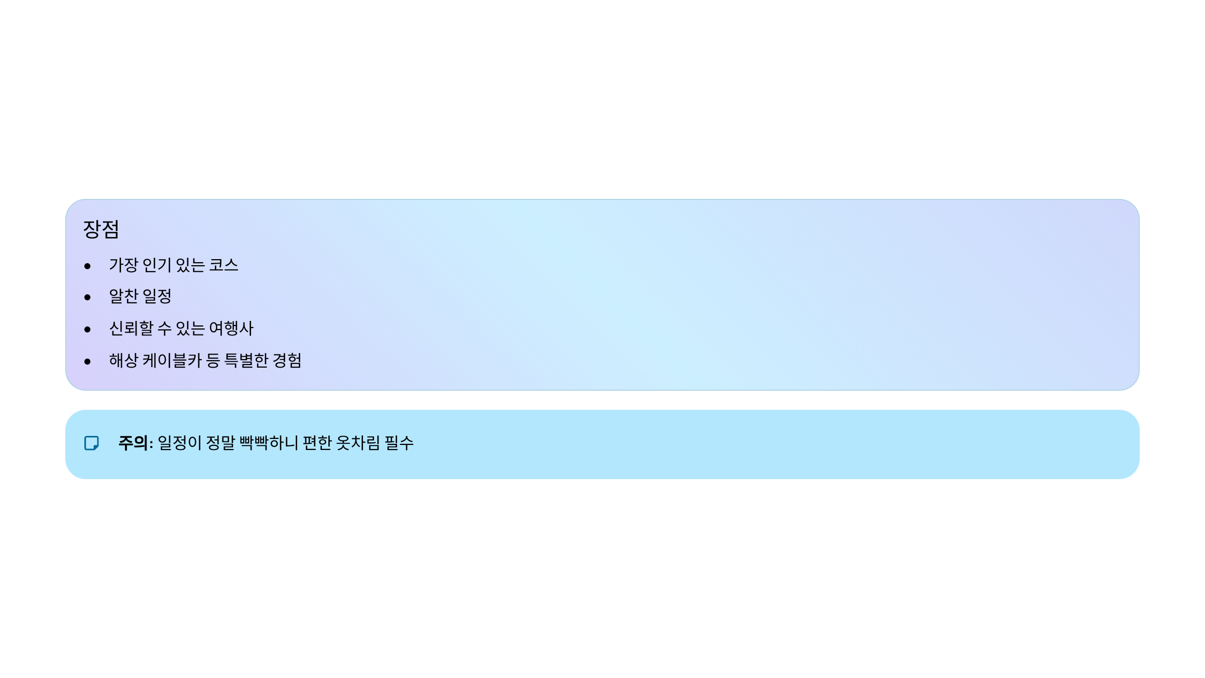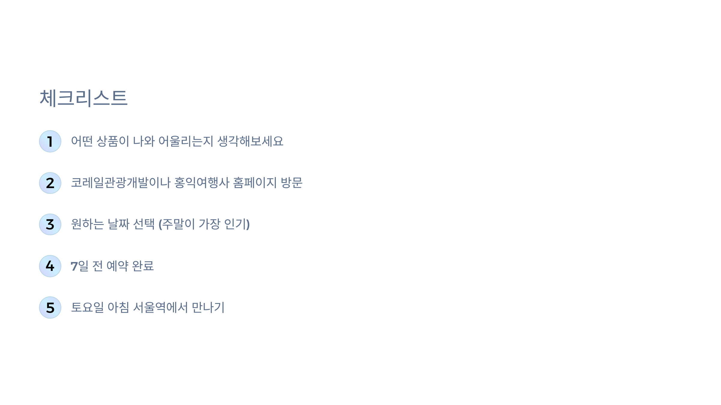 | 코레일투어 | 약 35만원 | 알찬 일정, KTX 이용 | 부모님, 처음 하는 분 |