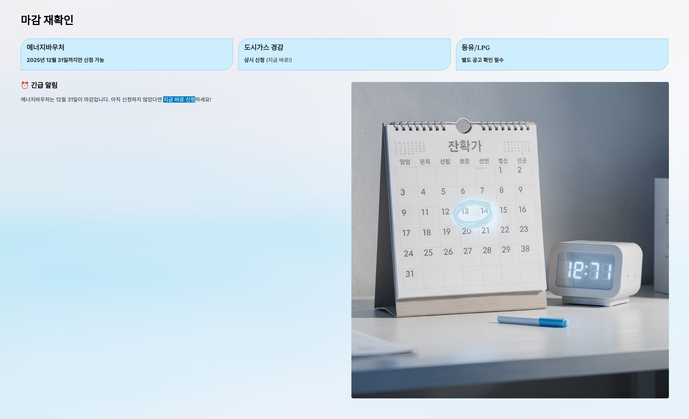 - ✅ 에너지바우처: 아직 신청 가능 (12월 31일까지)