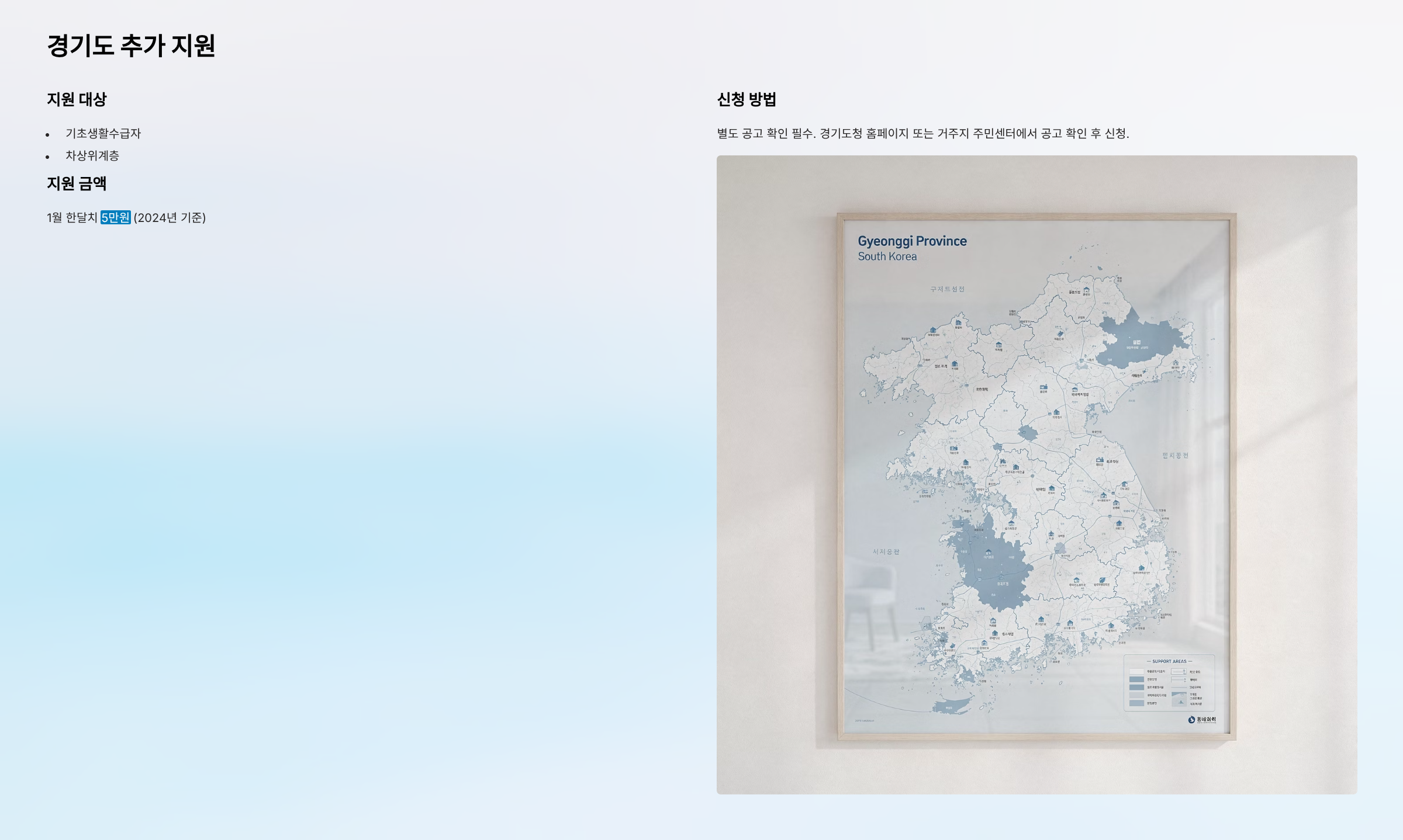 - 지원금: 1월 한달치 5만원 (2024년 기준)