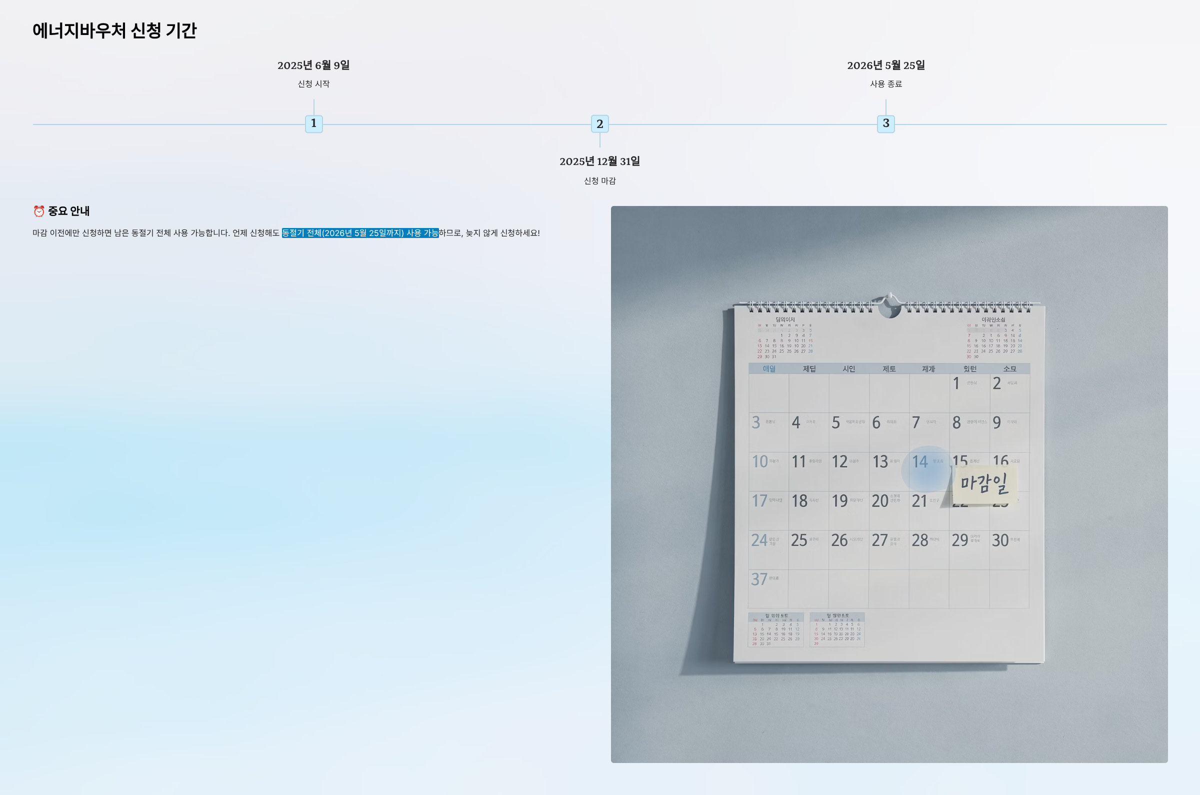 - 에너지바우처: 2025년 12월 31일까지만 신청 가능